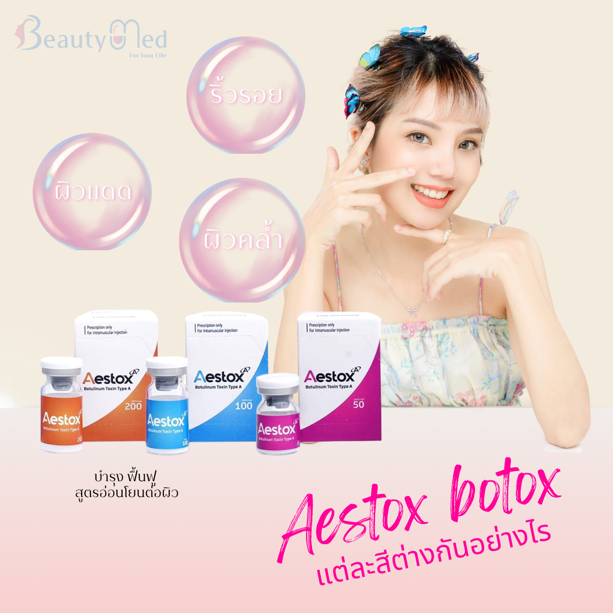Aestox botox Aestox botox is another premium Korean botox brand that is very popular in Thailand. It has outstanding properties in terms of providing natural results. It is popularly used for injections to reduce the jaw, slim the face, and reduce wrinkles on the face. Is Aestox good? What are its special properties? It has been researched by institutes with international standards in Thailand and abroad, resulting in a drug with a purity of more than 99.5%. The higher the purity of the drug, the less likely it is to become drug resistant. Therefore, Aestox botox injections have a very low chance of becoming drug resistant. It is also certified by the Thai and Korean FDA, making it very safe.